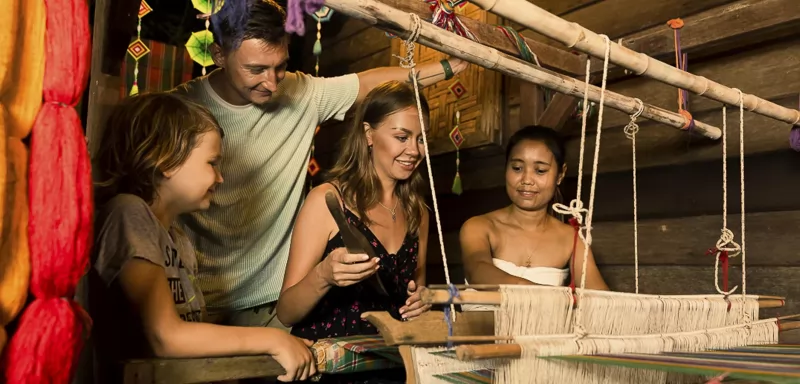 Step back in time and walk through the village of all four regions of Siam, the North and also the North and the hilltribes the Northeast, the Central Plains and, the South. You can learn about Thai wisdom especially about being friendly to nature. The house of each region was built compatible with its terrain and climate. The villagers grow the trees and plants for shade, food and medicine. Experience the traditional Thai way-of-life by joining in the cultural activities with the villagers such as rowing a boat along the canal, dressing in Thai traditional costumes, doing cloth weaving, taste the food that is not common nowadays. Live and feel as if you are in that era.