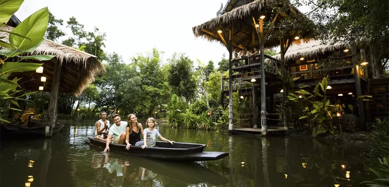 Step back in time and walk through the village of all four regions of Siam, the North and also the North and the hilltribes the Northeast, the Central Plains and, the South. You can learn about Thai wisdom especially about being friendly to nature. The house of each region was built compatible with its terrain and climate. The villagers grow the trees and plants for shade, food and medicine. Experience the traditional Thai way-of-life by joining in the cultural activities with the villagers such as rowing a boat along the canal, dressing in Thai traditional costumes, doing cloth weaving, taste the food that is not common nowadays. Live and feel as if you are in that era.